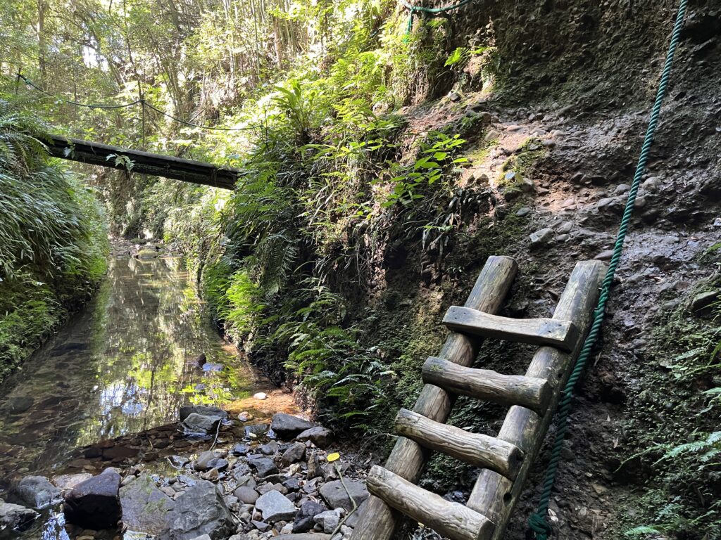 体力&足元の状態によって4つの歩き方が可能。滝まで行くなら、丸太でできた橋を渡り、ロープやはしごを使ってプチ探検も味わえますよ。