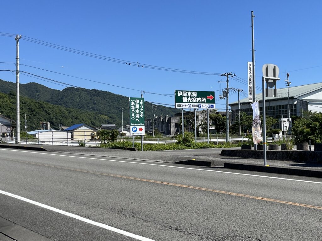 国道55号線・道路南側に、伊尾木洞観光案内所あり。