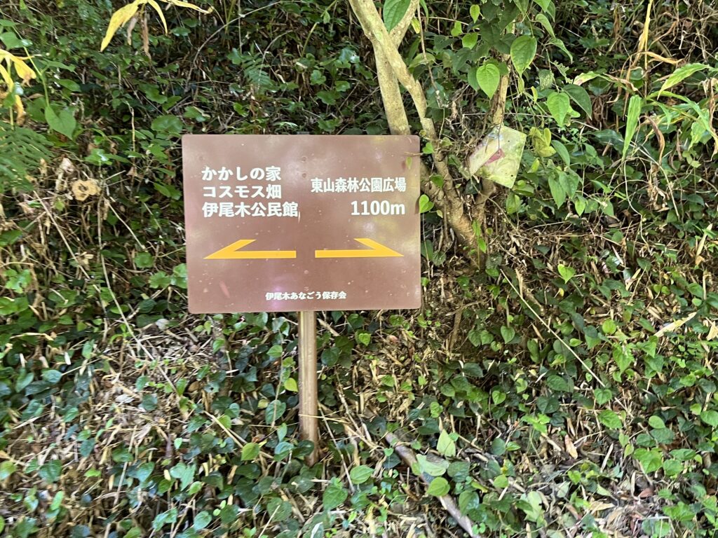 滝から約5分ほどでこの看板。これを左へ進みます。