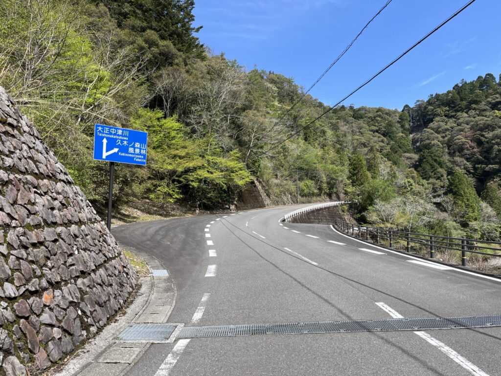 『中津川(6Km)』の標識が出てきたら、右折。細い道にはなりますが、きれいな片側1車線も出てきますのでご安心ください。