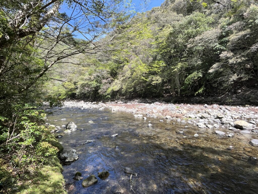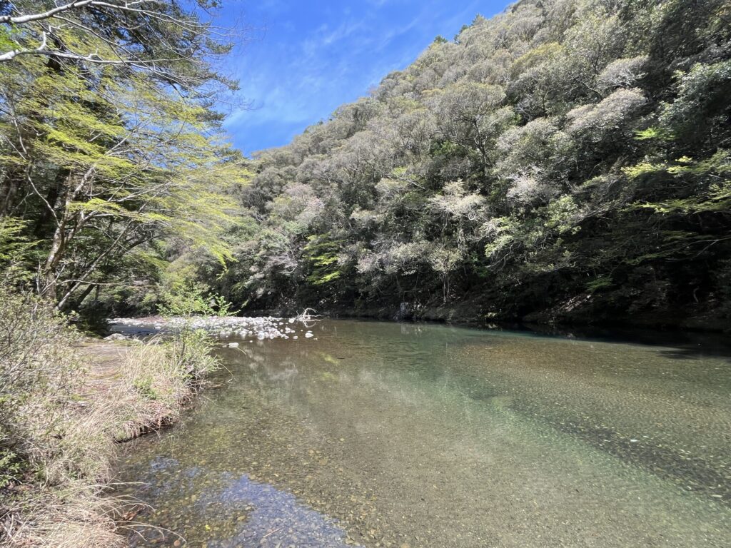 河原手前は気軽に川遊びが楽しめそうな浅瀬もあり、