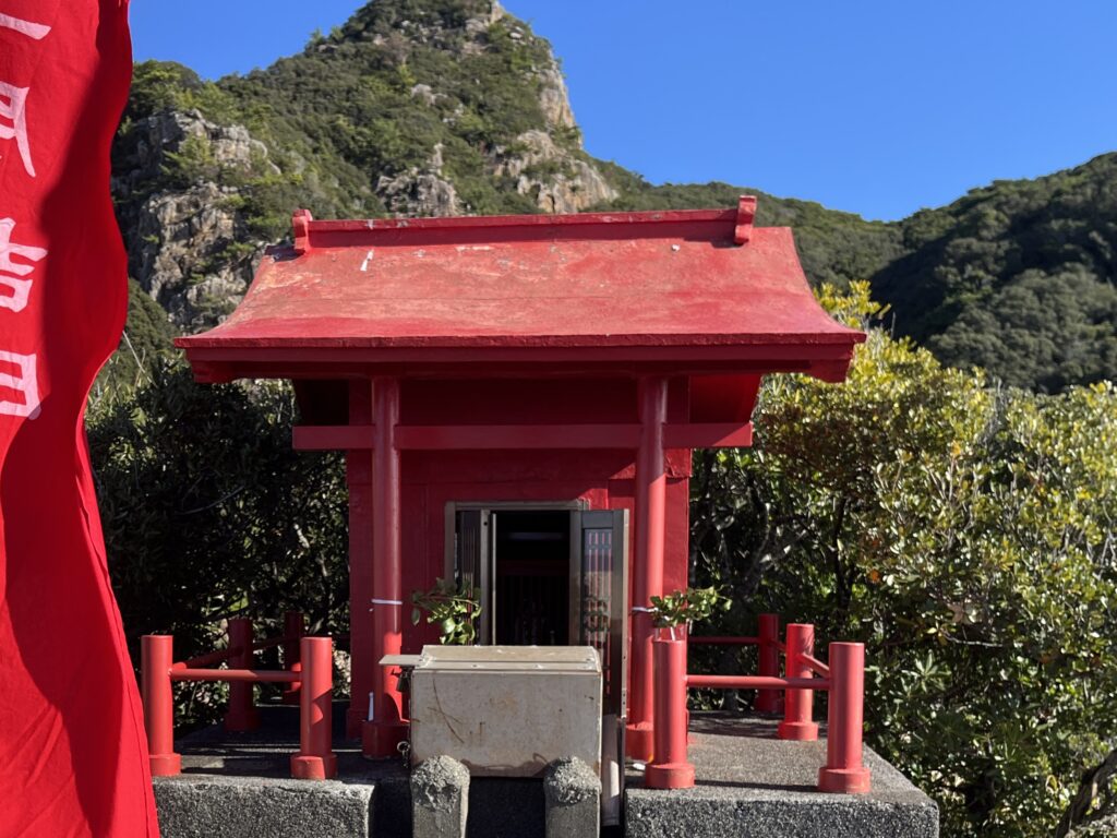 太平洋の青を背にした、赤い鳥居。